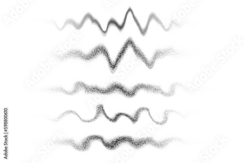 Wavy smoke effect. Wind and spray with dust texture. Grainy gradient clouds. Stipple mist. Vector collection