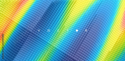Wavy surface with dynamic effect. Molecular abstract background. Layer of cells. 3d vector illustration for science or medical.