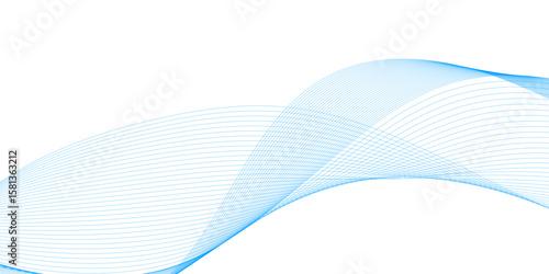 Wavy transparent lines in blue color, flow vector abstract wave on white background. Blue line wave ornament