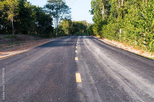 Way in park around tree for exercise walking and relax in walkway garden at countryside of Thailand. Empty street for nice with comfortable great garden