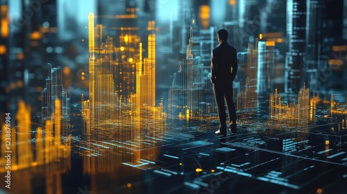 Wealth management, financial advisor with smart analytics, 3D illustration.