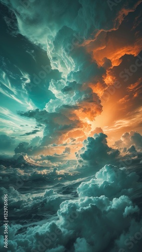 Weather forecasting concept, backdrop of climate change, and sky image composite showcasing various weather conditions.