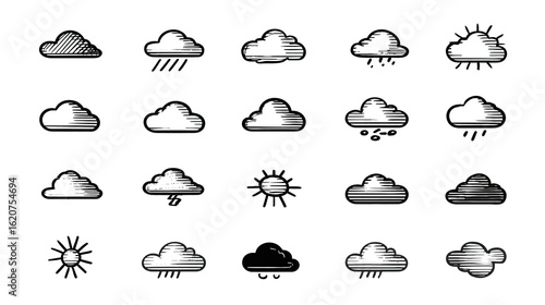 Weather Icon Set Hand Drawn Cloud and Sun Sketch