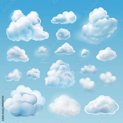 weather sky clouds white set blue cloudscape vector illustration collection abstract symbol air s