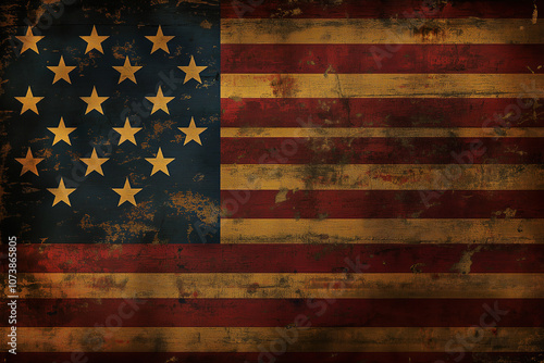 Weathered American flag with vintage texture and bold colors, symbolizing patriotism and history with a rustic charm. Generative AI