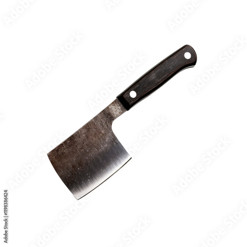 Weathered Cleaver Butcher Knife with Dark Wooden Handle Isolated on Transparent Background