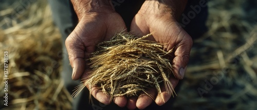 Weathered hands gently hold a bundle of golden wheat, evoking themes of harvest, tradition, and connection to the earth.