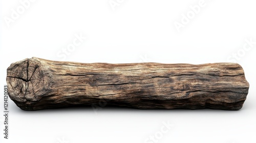 Weathered Wooden Log Isolated on White Background.
