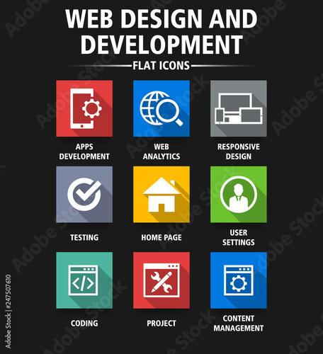 WEB DESIGN AND DEVELOPMENT FLAT ICONS