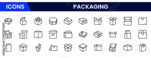 Web line icon collection showcasing package-related elements, including boxes, shipping, and delivery concepts. Ideal for e-commerce, logistics, and packaging industry applications.