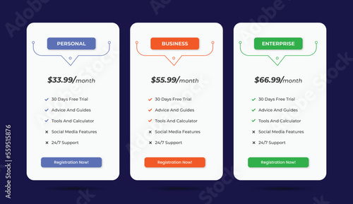 Web pricing table design for business, Pricing table design, Table price comparison, Vector illustration