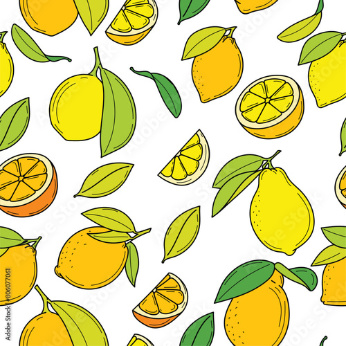 WebBright vector seamless pattern with juicy lemons and fresh leaves. This cheerful design on a white background brings freshness and energy, turning your project into an oasis of color.