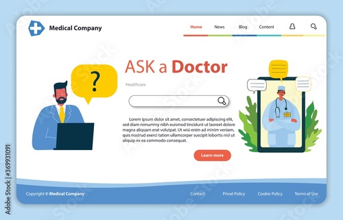 Website concept design for medical help resources. Online doctor instant help approach. Healthcare business solution.