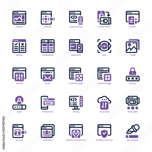 Website Responsive icon pack for your website, mobile, presentation, and logo design. Website Responsive icon dual tone design. Vector graphics illustration and editable stroke.
