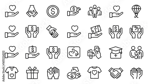 WebVector art of a collection of line drawings represents charity, donation, and giving