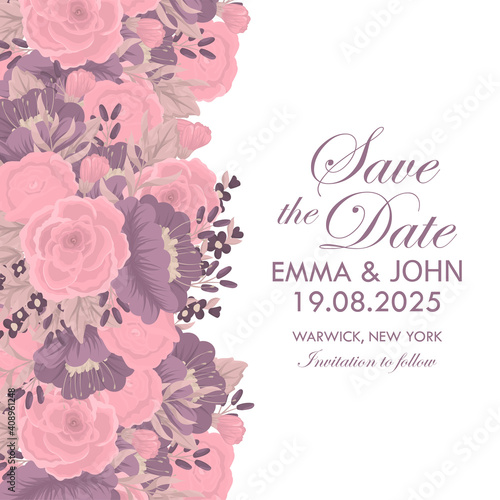 Wedding Invitation card templates with Ultra Violet color flowers
