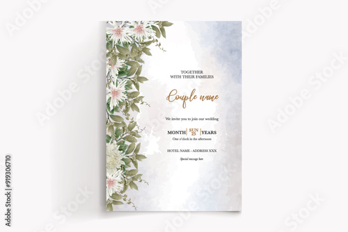 WEDDING INVITATION FRAME WITH FLOWER DECORATIONS WITH FRESH LEAVES