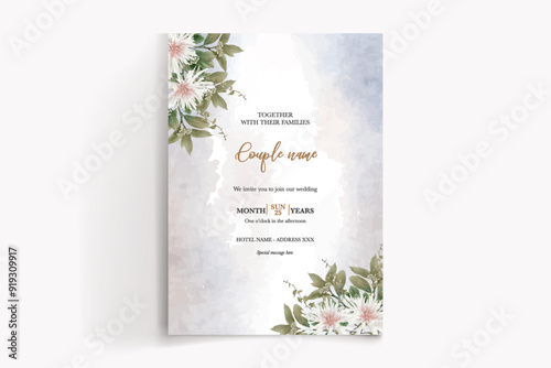 WEDDING INVITATION FRAME WITH FLOWER DECORATIONS WITH FRESH LEAVES