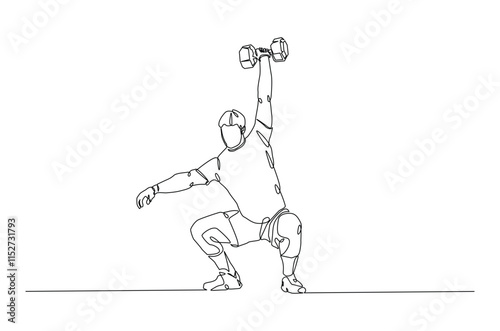 Weightlifting continuous one line drawing. Cardio and lifting exercises single line art illustration. Editable vector.
