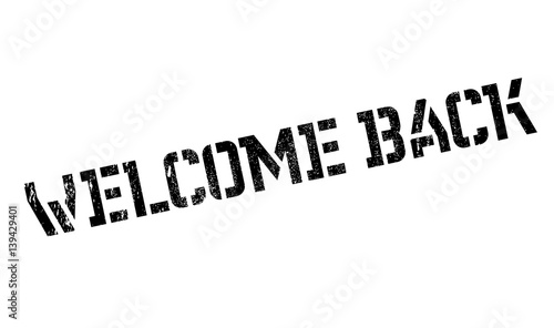 Welcome Back rubber stamp. Grunge design with dust scratches. Effects can be easily removed for a clean, crisp look. Color is easily changed.