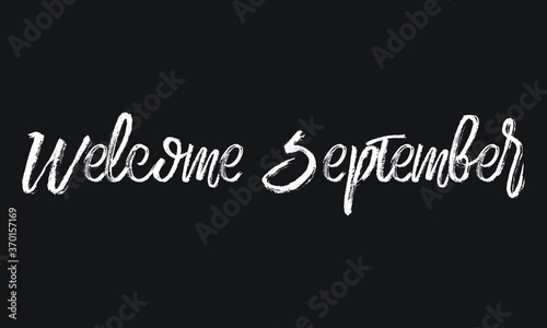 Welcome September Chalk white text lettering retro typography and Calligraphy phrase isolated on the Black background