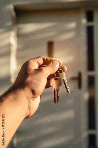 Welcome to new house. Hand holding keys