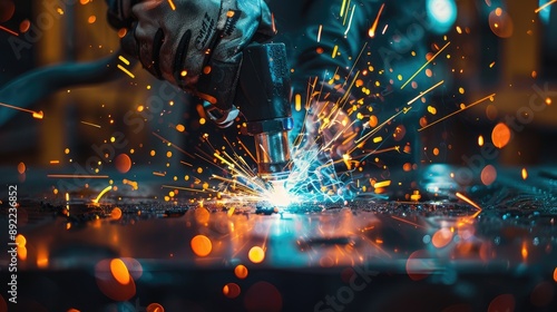 Welder in action with bright sparks