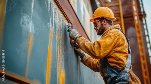 Welder repairs rusty steel on construction site