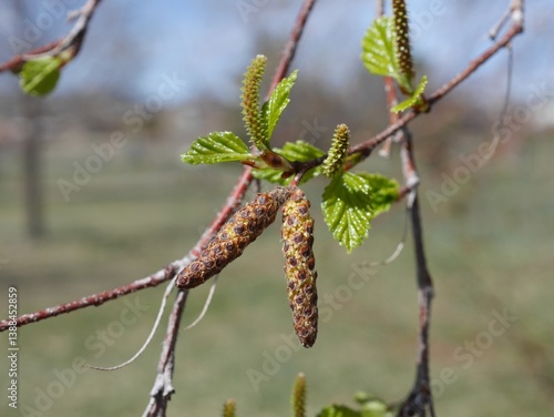 Western River Birch tree catkins in spring, Colorado