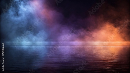 Wet asphalt, night view, neon reflection on the concrete floor. Night empty stage, studio. Dark abstract background. Product Showcase Spotlight Background.