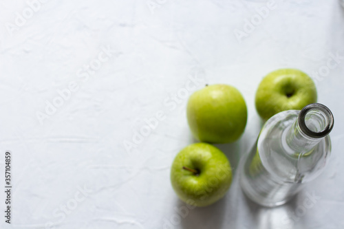 Wet fresh green apples on a table. The concept of organic and healthy food