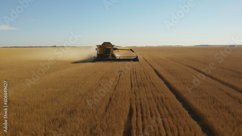 Wheat crop harvest. view of combine harvester at work during harvest time. generative ai
