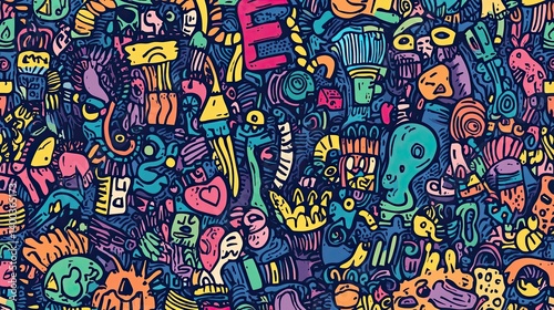 Whimsical doodlescape bursting with vibrant colors and playful shapes