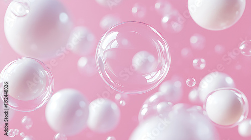 Whimsical Floating Bubbles in a Serene Pink Atmosphere