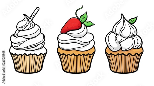 Whimsical Hand-Drawn Cupcakes: A Trio of Sweet Treats Illustration AI Generated
