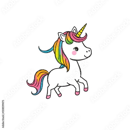 Whimsical Playful Unicorn with Rainbow Mane T-Shirt Graphic Design
