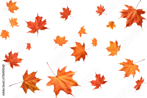Whirling Symphony of Autumn: A Fluttering Ballet of Orange Leaves. On a White or Clear Surface PNG Transparent Background.
