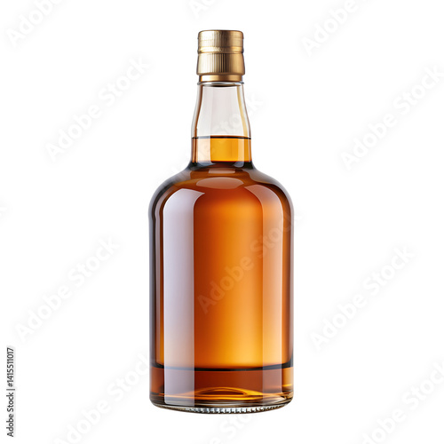 Whiskey Bottle Mockup Featuring Gold Cap Standing On A White Background