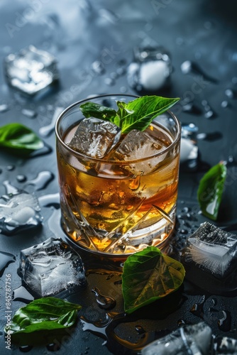Whiskey Cocktail: Refreshing Drink with Ice Cubes for Summer Vibes