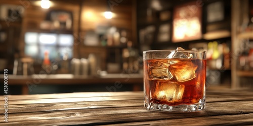 Whiskey on the rocks in a cozy bar setting during the evening hours