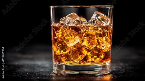 Whiskey on the rocks in a glass with a dark background offers a cool and refreshing drink experience