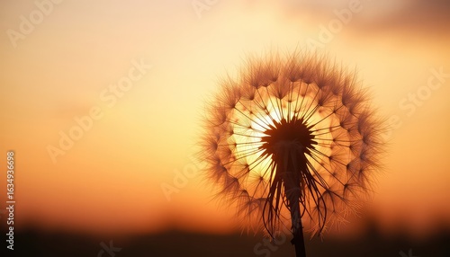 Whispers of the setting sun, the ephemeral beauty of a seed head with delicate structures backlit by the glowing golden sky