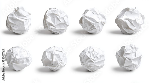 White 3D crumpled paper ball, realistic wrinkled trash vector isolated on a transparent background, featuring a messy, rumpled grunge sheet as a waste or mistake in a document.