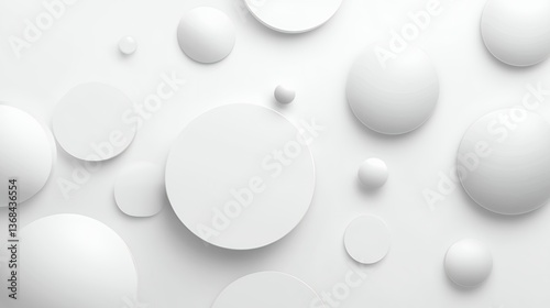 White 3D Spheres and Discs Abstract Background with Shadows and Geometric Design