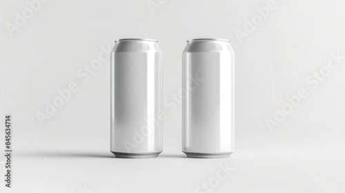 white 500ml and 330ml aluminum soda cans isolated on white background product mockup