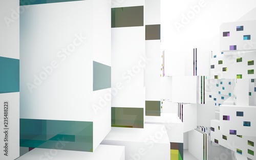 White Abstract architectural background whith colored gradient lines . 3D illustration and rendering