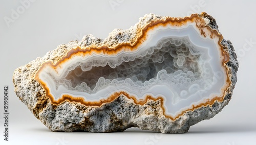 White agate stone with soft gray and light brown veins, revealing natural patterns and unique gemstone texture.