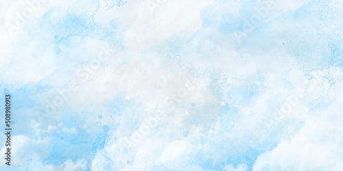 White and blue color frozen ice surface design abstract background. blue and white watercolor paint splash or blotch background with fringe bleed wash and bloom design.