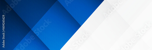 White and blue modern abstract wide banner with geometric shapes. Dark blue and white abstract background, modern desing