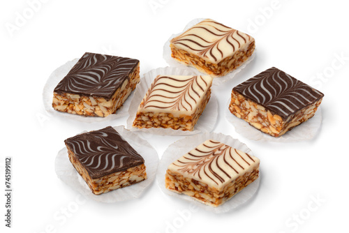 White and brown Moroccan marbled chocolate cookies isolated on white background close up